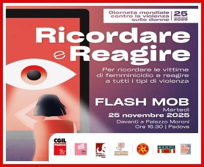 In occasione della Giornata Mondiale contro la Violenza sulle Donne del 25 novembre, il Coordinamento Donne della Cgil di Padova ha rinnovato il suo impegno nella sensibilizzazione e nella lotta contro ogni forma di violenza di genere, organizzando un Flash Mob per "Ricordare e Reagire". L'appunt...