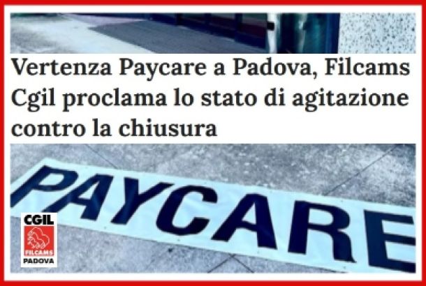 La Filcams Cgil di Padova esprime profonda preoccupazione e ferma contrarietà per la decisione del gruppo Comdata di avviare la liquidazione volontaria di Paycare, società che gestisce servizi di call center e transazioni bancarie. Una scelta che colpirà 76 lavoratori su tutto il territorio nazionale, di cui 9 impiegati nella sede di Padova, inquadrati secondo i contratti che regolano i lavorat...