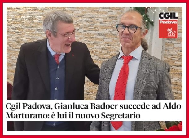 L’Assemblea Generale della Cgil di Padova, riunita martedì 17 dicembre, presso il ristorante “Al Bosco” a Cervarese Santa Croce, ha eletto – con 99 voti favorevoli (due contrari, 4 astenuti) in una platea costituita da 105 componenti, vale a dire con il 94% – Gianluca Badoer come nuovo Segretario Generale della Camera del Lavoro di Padova.
