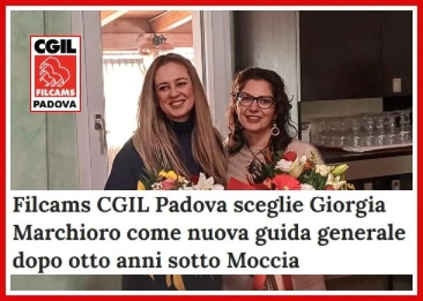Venerdì 28 novembre l'Assemblea Generale della Filcams CGIL Padova ha eletto all'unanimità Giorgia Marchioro come nuova Segretaria Generale, alla presenza di Michele Carpinetti, Segretario generale Filcams Veneto, e di Aldo Marturano, Segretario generale Cgil Padova.