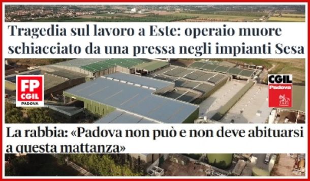 Tragedia alla SESA di Este: secondo morto sul lavoro in pochi giorni nel padovano. Cgil Padova e FP Cgil Padova: “Mattanza inaccettabile"