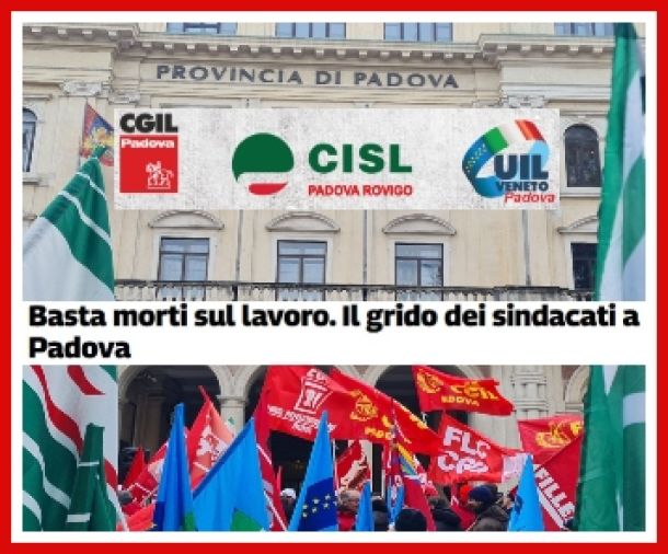 Le Organizzazioni Sindacali Cgil Padova, Cisl Padova Rovigo e Uil Padova annunciano una mobilitazione unitaria per sollecitare interventi immediati e rispondere con fermezza alla preoccupante e drammatica serie di incidenti sul lavoro che ha colpito duramente il territorio dall’inizio dell’anno.
