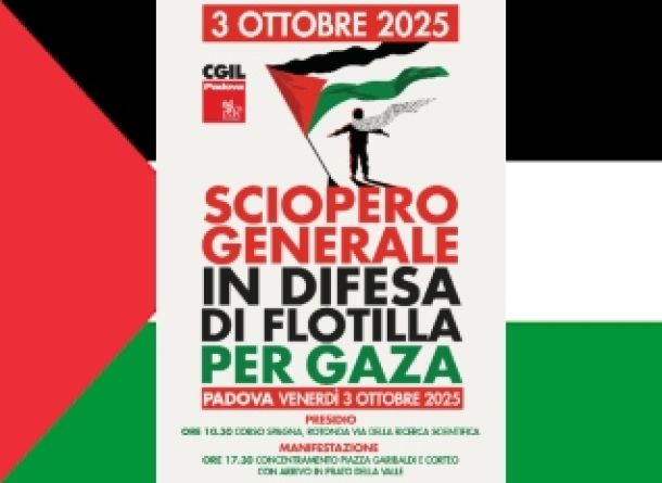 Una giornata storica per Padova quella di venerdì 3 ottobre. La città ha risposto con una partecipazione massiccia allo sciopero generale indetto dalla CGIL, vedendo oltre 50 mila persone (probabilmente un record) sfilare per le vie del centro. Lavoratrici, lavoratori, pensionate, pensionati, studentesse e studenti, insomma il popolo in tutti i suoi tratti, si sono uniti in un unico, imponente corteo, sventolando le bandiere della Palestina, della Pace e dei sindacati presenti, tra cui la Cgil di Padova, e ribadendo l'importanza dei valori costituzionali, la pace e la giustizia sociale.