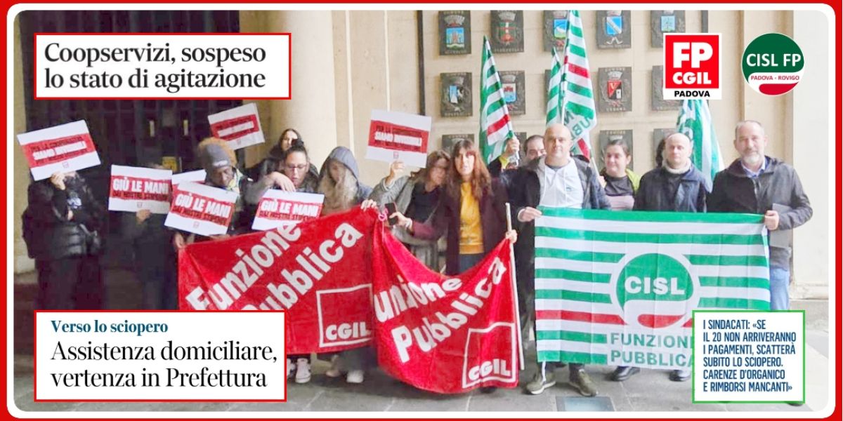 “Abbiamo ritenuto opportuno – concludono Marigo e Maisto – uscire dall’incontro con il vice prefetto chiedendo due cose: la prima è che ci fosse un incontro a breve con la cooperativa per verificare punto su punto la situazione dei singoli lavoratori e la seconda che ci fosse un incontro con il Comune di Padova per comprendere la posizione della stazione appaltante sul servizio di assistenza ad anziani e fragili. Nel frattempo, garantiamo che staremo in costante contatto con le lavoratrici e i lavoratori affinché questi eventi non si verifichino più”.