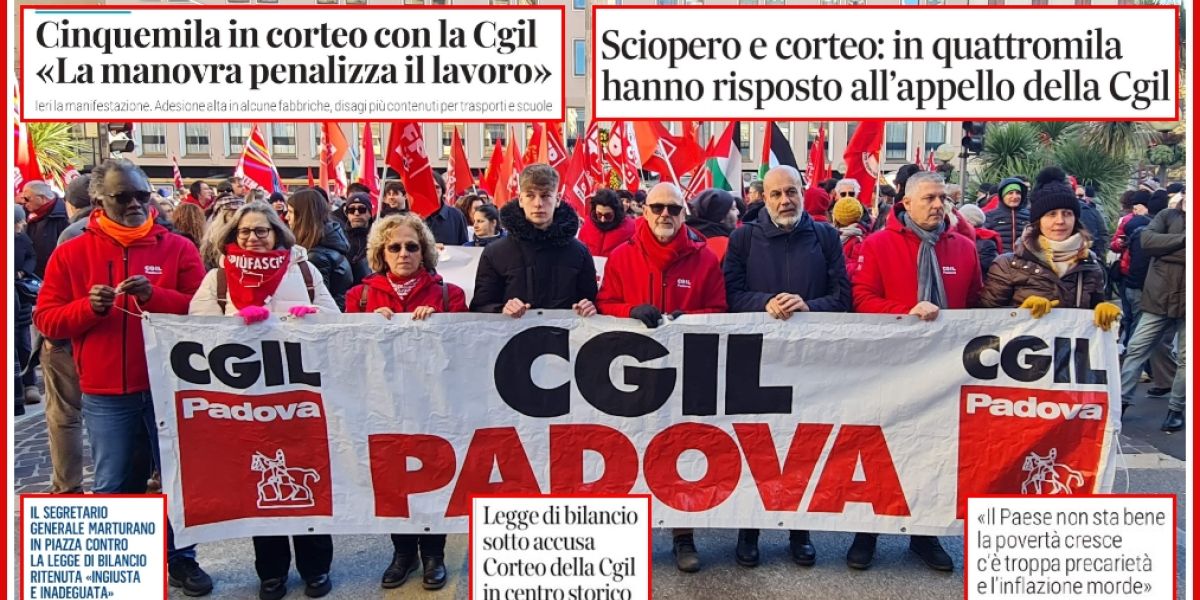 Erano in migliaia - chi dice 5000, chi dice 4000: poco importa, erano comunque in tante e in tanti - alla manifestazione organizzata ieri, venerdì 12 dicembre, dalla Cgil a Padova, nell'ambito dello Sciopero Generale proclamato a livello nazionale dal sindacato di Maurizio Landini contro la Legge di Bilancio del Governo Meloni e che ha visto scendere, in decine e decine di piazze italiane, un totale di circa mezzo milione di persone.